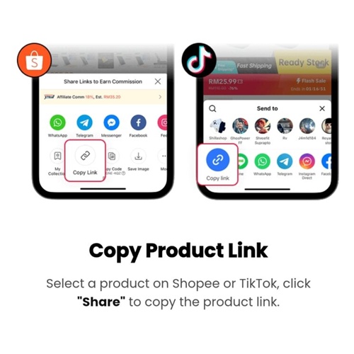- Menjana komisen melalui perkongsian pautan produk di TikTok, Instagram, Facebook, YouTube dan media sosial