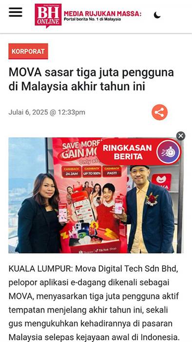 Mova dioptimumkan untuk pembeli Malaysia. Sesetengah tawaran mungkin berfungsi secara serantau, tetapi pengeluaran dan liputan peniaga tertumpu di Malaysia.