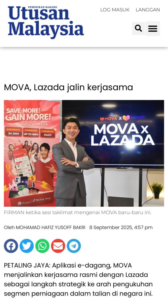 MOVA ialah platform affiliate cashback yang bekerjasama dengan Shopee, TikTok, dan Lazada. Anda di Jemput Bersama Kami!